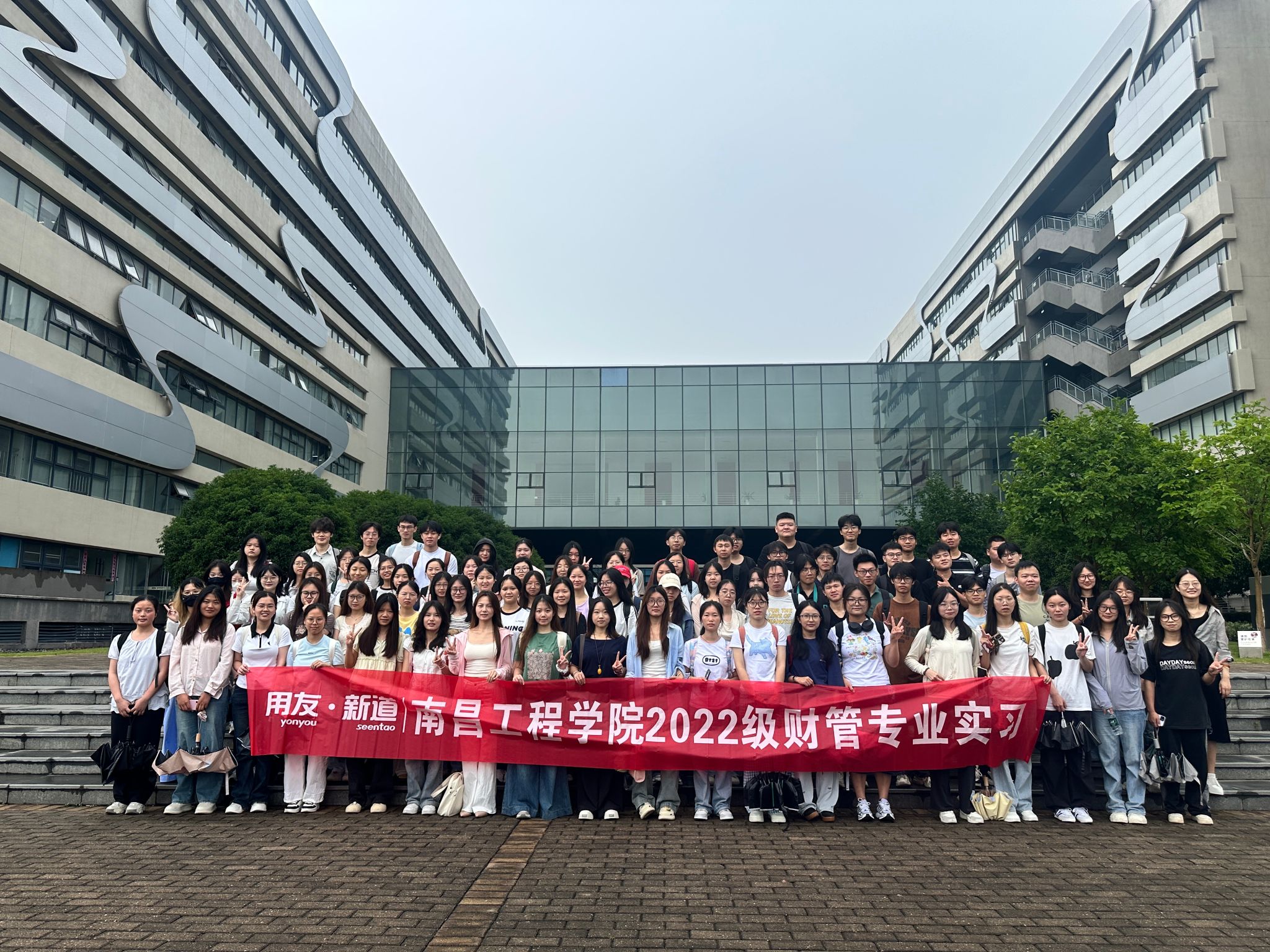 用友新道江西分公司副总经理王文江、产教融合总监熊志忠、教育规划顾问李思热情接待了院调研团队。校企双方分别介绍了各自的基本情况及合作愿景,并就产教融合品牌专业建设、核心课程设计、产教融合路径、学科建设、学生培训和就业等重要议题展开了深入交流,双方达成一致意见,签订了产教融合实践教学基地协议最后学院调研团队看望了在用友产业园(南昌)进行专业实习的2022级财务管理学生。