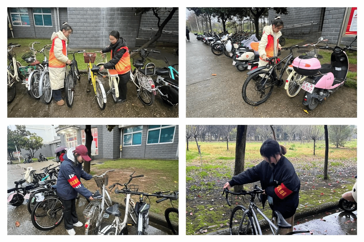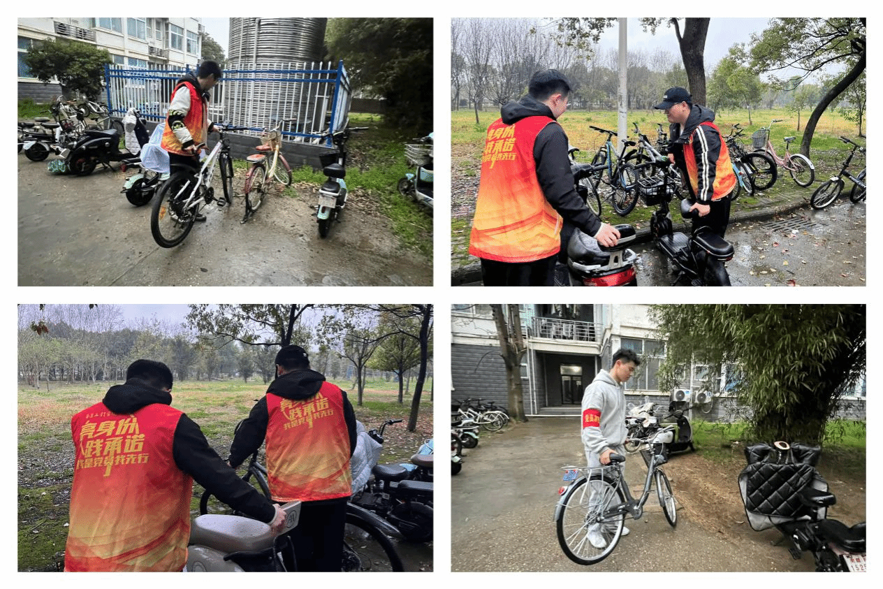 学生党员们分组协作,将宿舍区周边的电动车、自行车逐一归位整理,共计规范摆放车辆超过100辆。针对随意停放车辆的同学,志愿者们耐心劝导并现场示范规范停车方式,以党员的实际行动维护校园道路的整洁、有序、畅通。