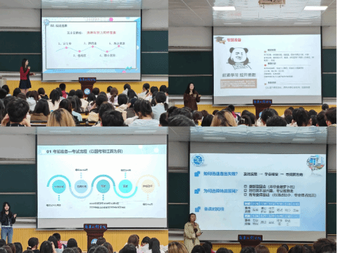 分享会上,考研学生代表吴思蔓、杨怡婧从目标院校选择、备考规划、心态调整等方面剖析考研核心策略;考公学生代表黄楚乔结合笔试技巧、面试实战及政策解读,系统梳理考公全流程;国网就业学生代表刘星雨围绕国网招聘要求、岗位匹配及职业发展路径展开系统讲解。