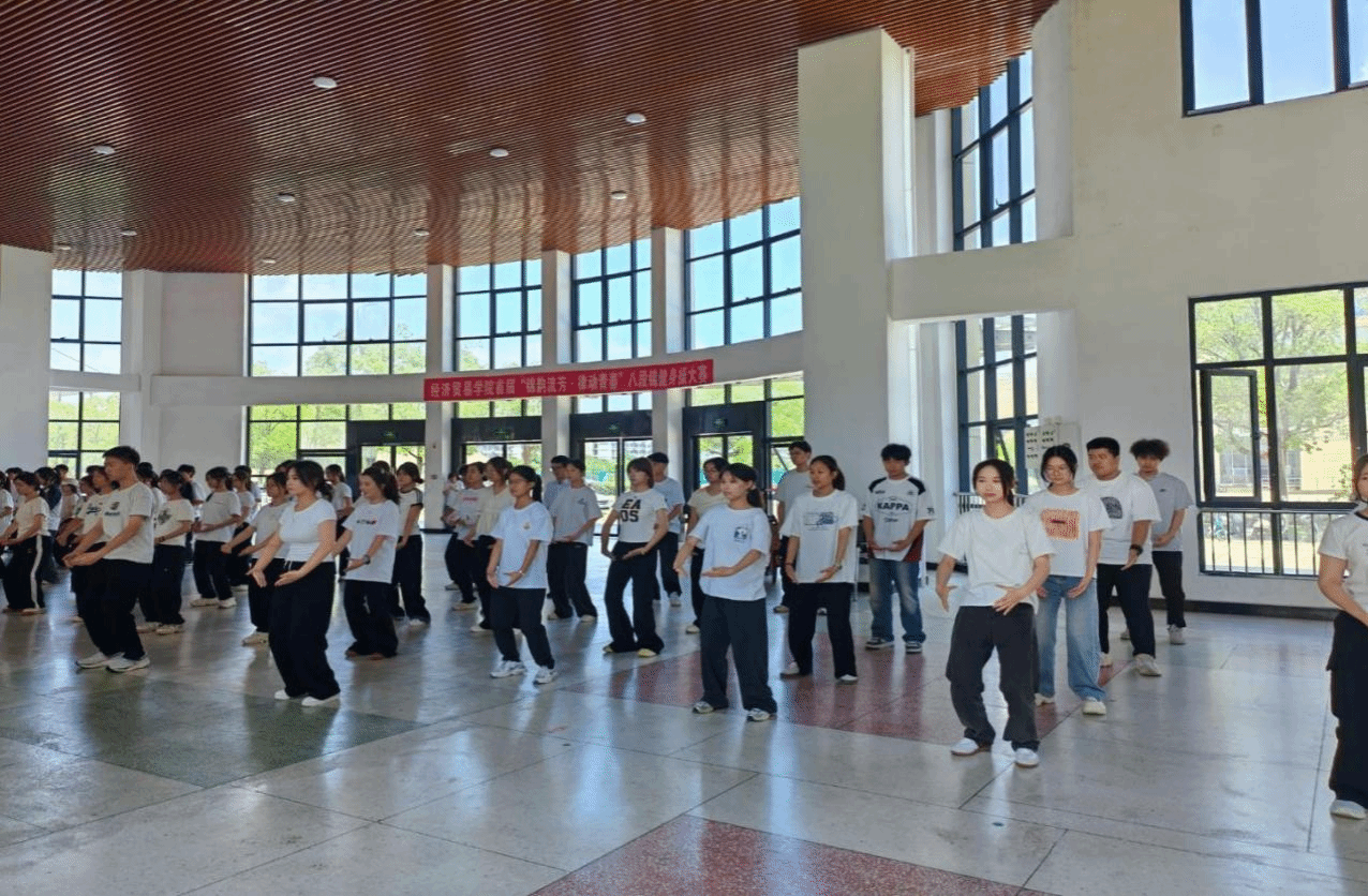 5月29日中午,3308维多利亚优惠大厅在济民楼大厅举办首届“锦韵流芳,律动青春”八段锦健身操比赛。本次活动旨在弘扬中华优秀传统文化,增强学生体质,促进校园体育文化建设。学院党委书记刘志强、师生代表及2024级各班同学,共计470余人参加活动。
